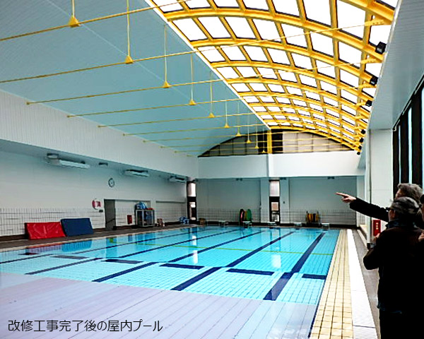 プラスPMでは、 年間を通して利用される屋内プールの天井耐震化と設備改修の計画から施工までの発注者支援業務をおこないました。